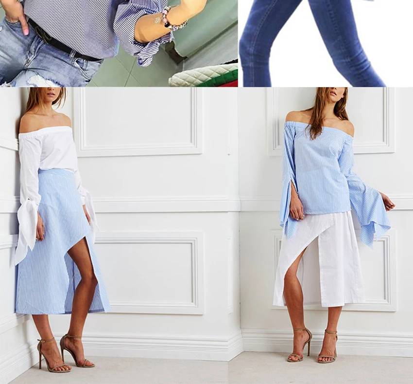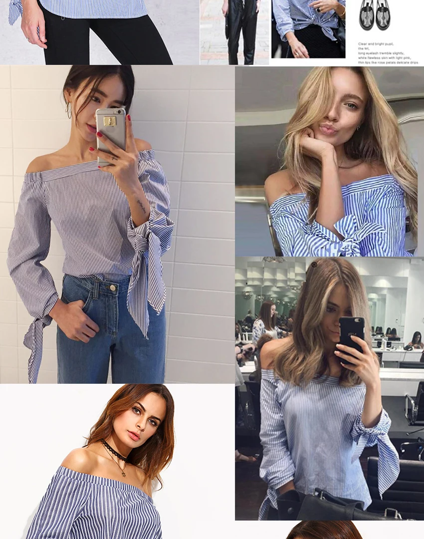 Women Blouse Elegant Bow Blue Off Shoulder Female Blouse Shirt Sexy Summer - Girls White blouse Women Tops Striped Blusas 3XL