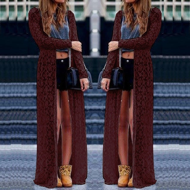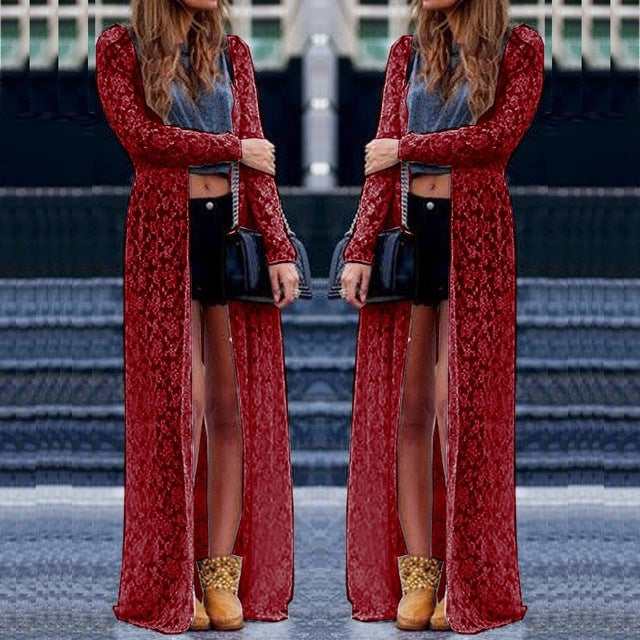 Plus Size Blusas Spring Women Outwear Lace Long Sleeve Beach Kimono Cardigan Casual Loose Long Blouses 6 Colors