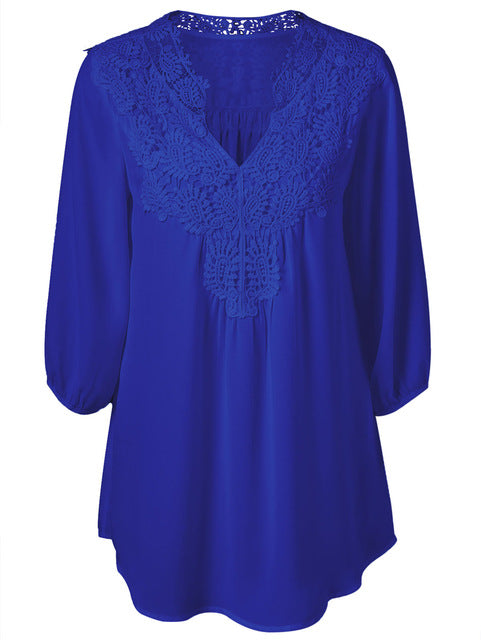 5XL Plus Size Tops Women Chiffon Blouse Shirt Lace Up Blouses V neck Loose Blusas Work Ladies Clothes Tunic