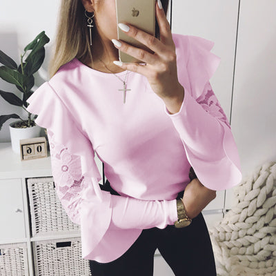 Ruffle Lace Blouse Shirt Women Long Sleeve Floral White Blouses Female Tops Elegant Fashion Blouse Shirts blusas femme