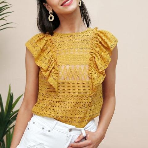 Sexy sleeveless ruffle lace blouse women O neck transparent white blouse shirt Elegant summer blusa feminian top
