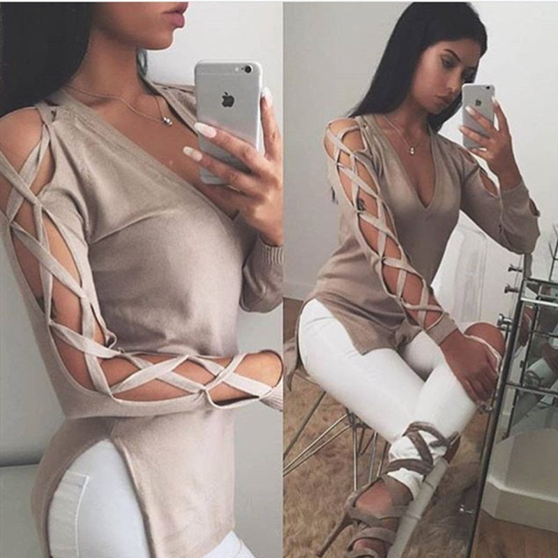 Gender: WomenSleeve Length(cm): FullPattern Type: SolidClothing Length: LongDecoration: Hollow OutStyle: CasualCollar: V-NeckFabric Type: BroadclothMaterial: Cotton,PolyesterSleeve Style: RegularItem Type: blouse&shirtsGender: WomenStyle: Fashion