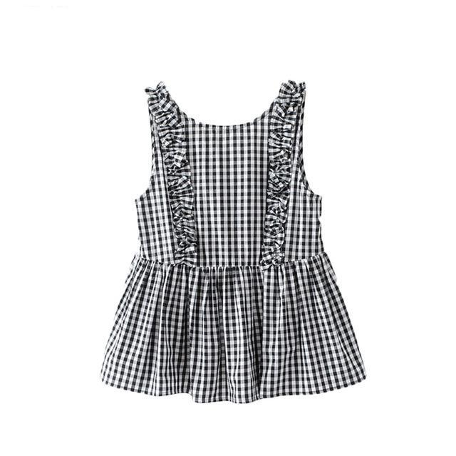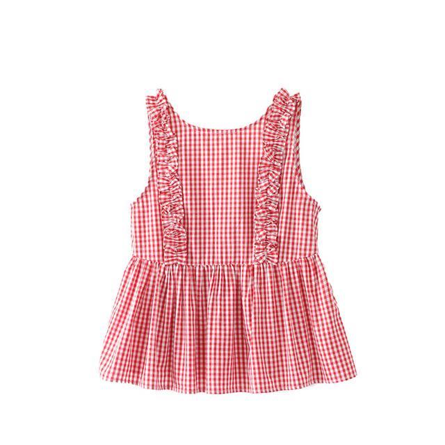 Gender: WomenCollar: O-NeckPattern Type: PlaidMaterial: CottonSleeve Length(cm): SleevelessFabric Type: WovenSleeve Style: RegularDecoration: RufflesStyle: CasualClothing Length: Regular