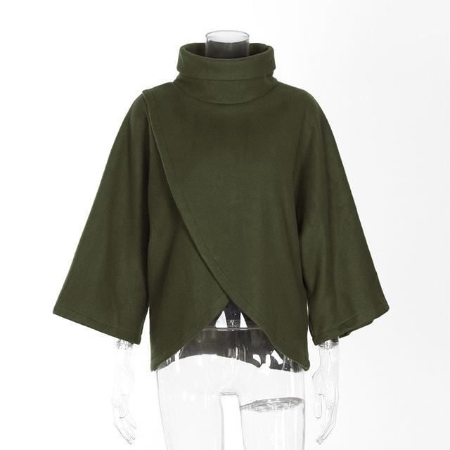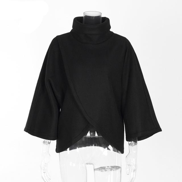 Elegant Gray TurtLeneck Irregular Blouse Womens 3/4 Sleeve Casual 90s Loose Top Street Fashion Wide Cuffs Shirt Blusas