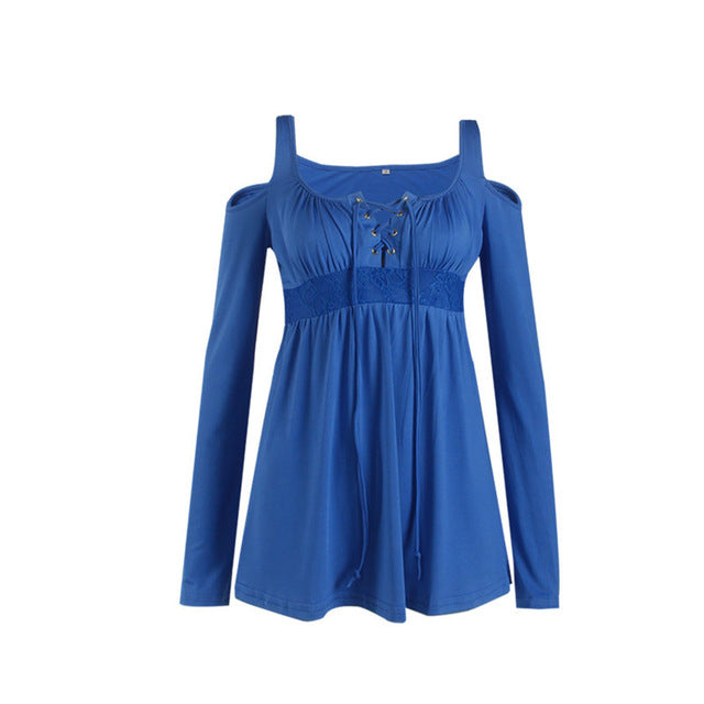 Collar: Strappy V-Neck Lace Blouses,Open Shoulder